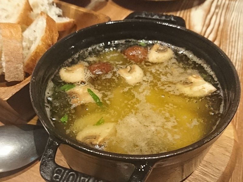 そしてさらに・・・アヒージョもエビとマッシュルームのアヒージョと、お薦めのメニューにあったスルメイカ(メニューにはもっと違った表現で書いてあったけど)のアヒージョも気になったのでまたも両方オーダーw(≧∀≦)w