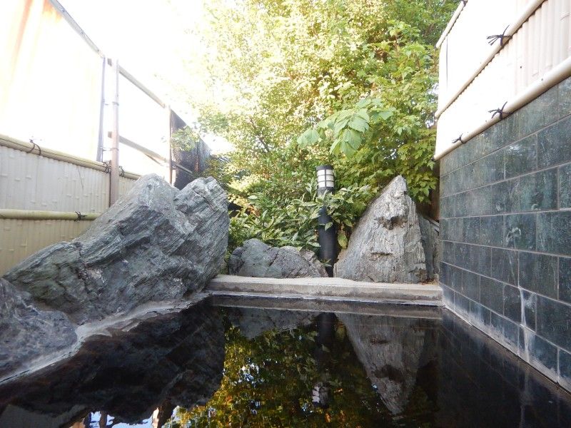 お湯に映った緑もきれいで、夜とはまた違った爽やかさがありました。