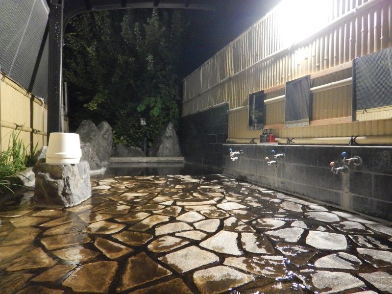 露天風呂は内湯と同じ石畳作り。