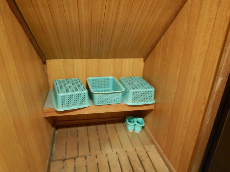 脱衣所は籠が置いてあるのみ。