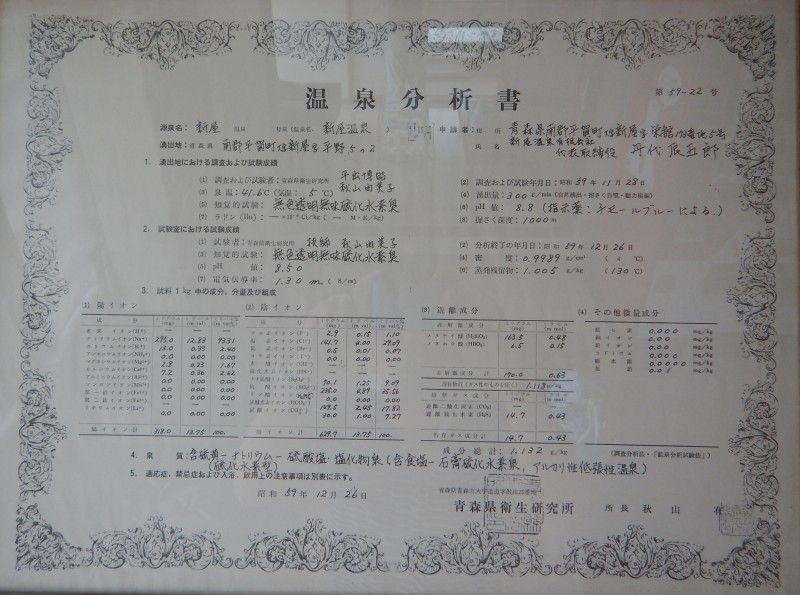 温泉がオープンした当初の成分表でしょうか。