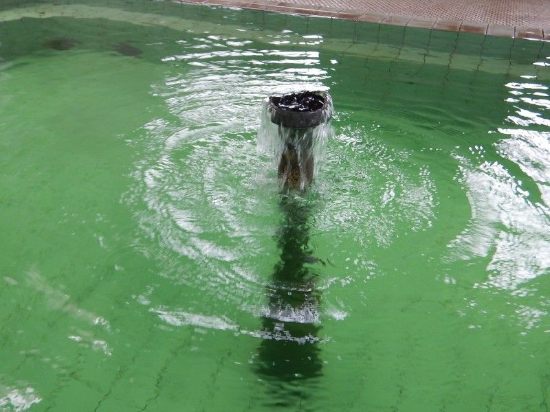 中央の湯口から投入されたお湯は湯船の縁から溢れ出ていました。