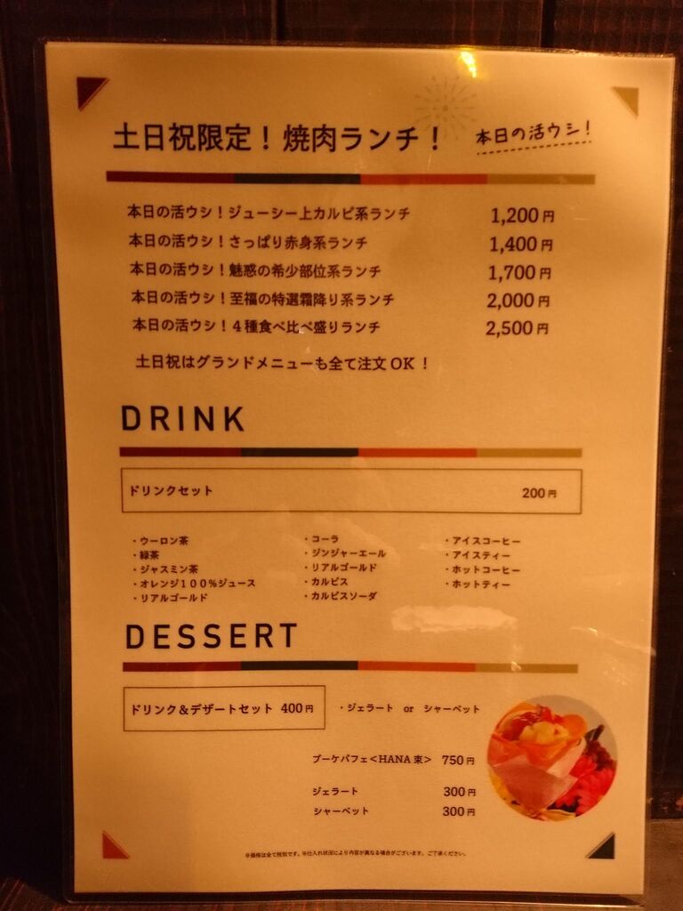 土日祝日限定の焼肉ランチが気になったけどオープン初日でまだ準備できていないとのこと。
