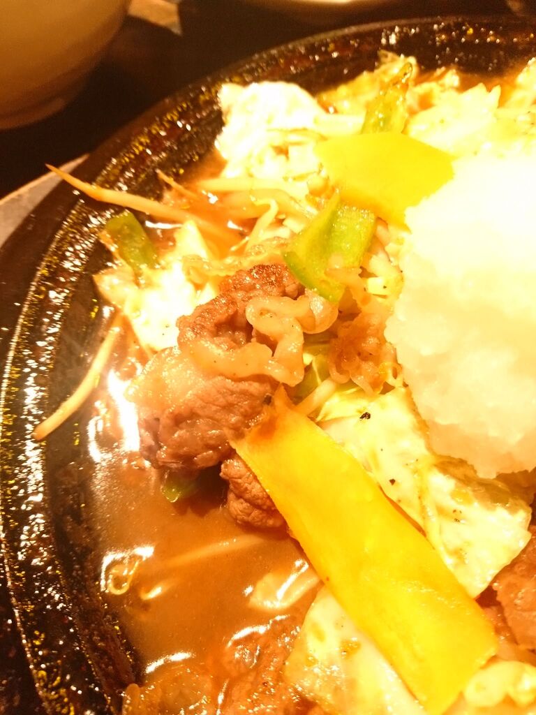 もう一つ注文したのが「たっぷり野菜の和牛おろし鉄板焼き」1250円。