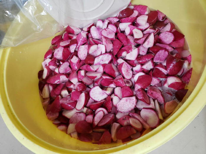 その4 畑の収穫(山ぶどう、肘折カブなどなど)を急ぐ → 洗う → 仕込み → 保存方法完了