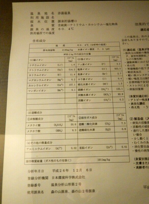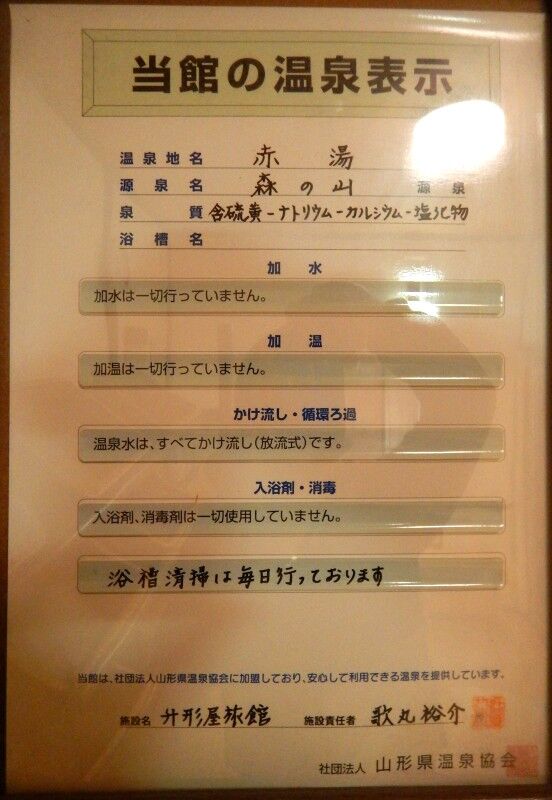 温泉成分表は廊下に、温泉表示は脱衣所に掲示してあります。