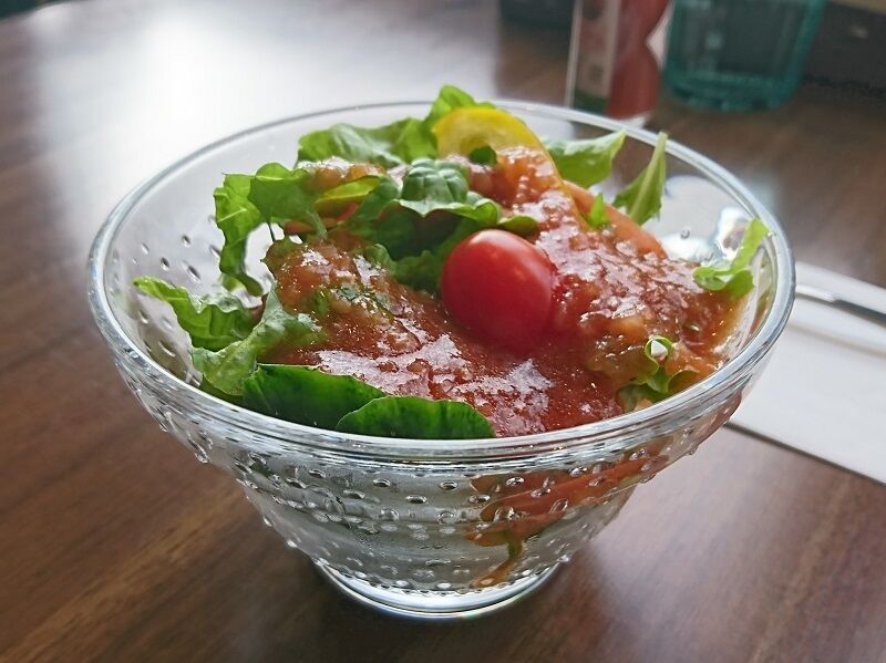ミニサラダは割と深さのある器に盛りつけられていて、意外にたっぷりと出てきた印象。