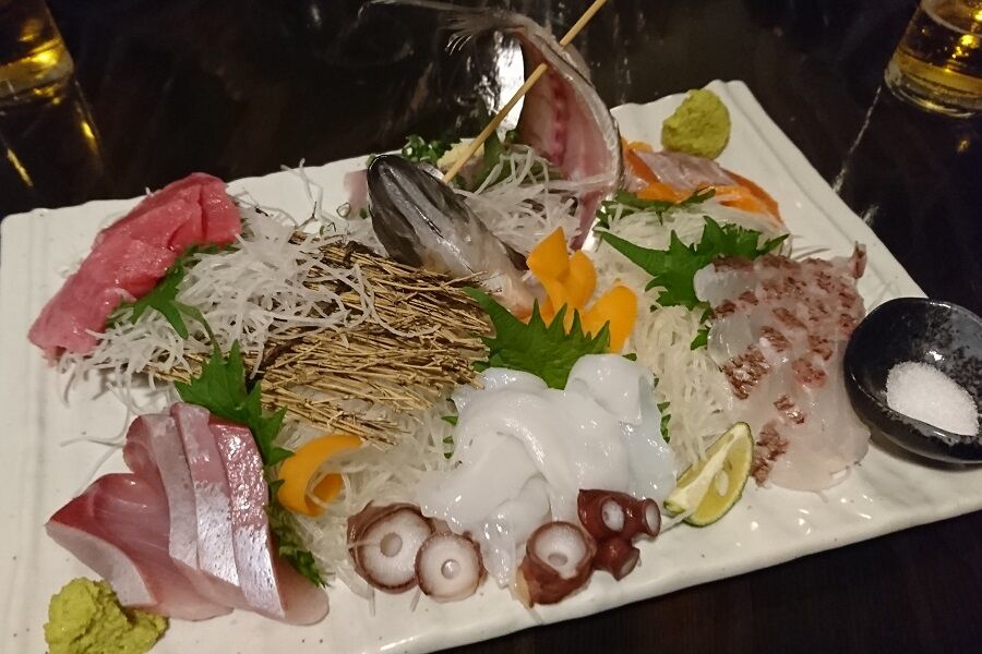 アジか何かの姿造りが見た目のインパクトを増してます( ̄ー ̄)ニヤリ