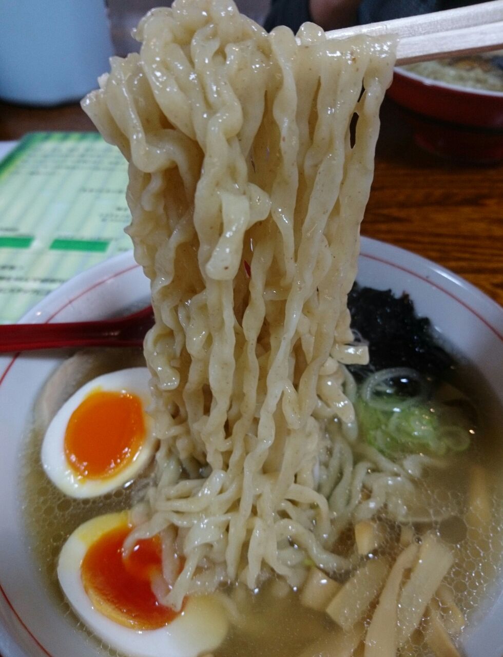 スープの印象は控えめだけど麺は食べごたえがありました。麺の美味しさを引き立てるためのスープといったバランス取りなのかもしれません。