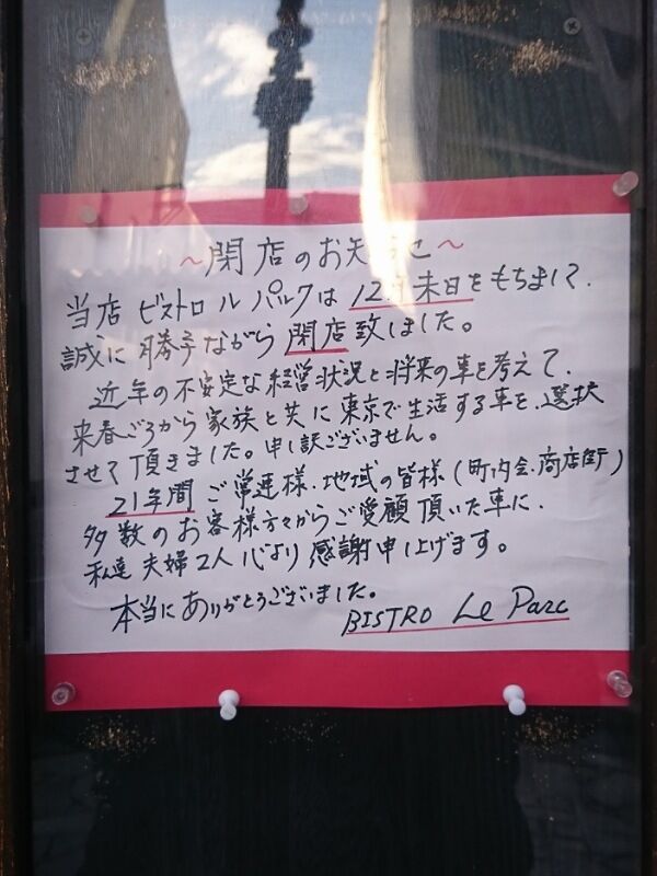 まさに青天の霹靂。なんの予告もなくいきなり閉店だなんて!