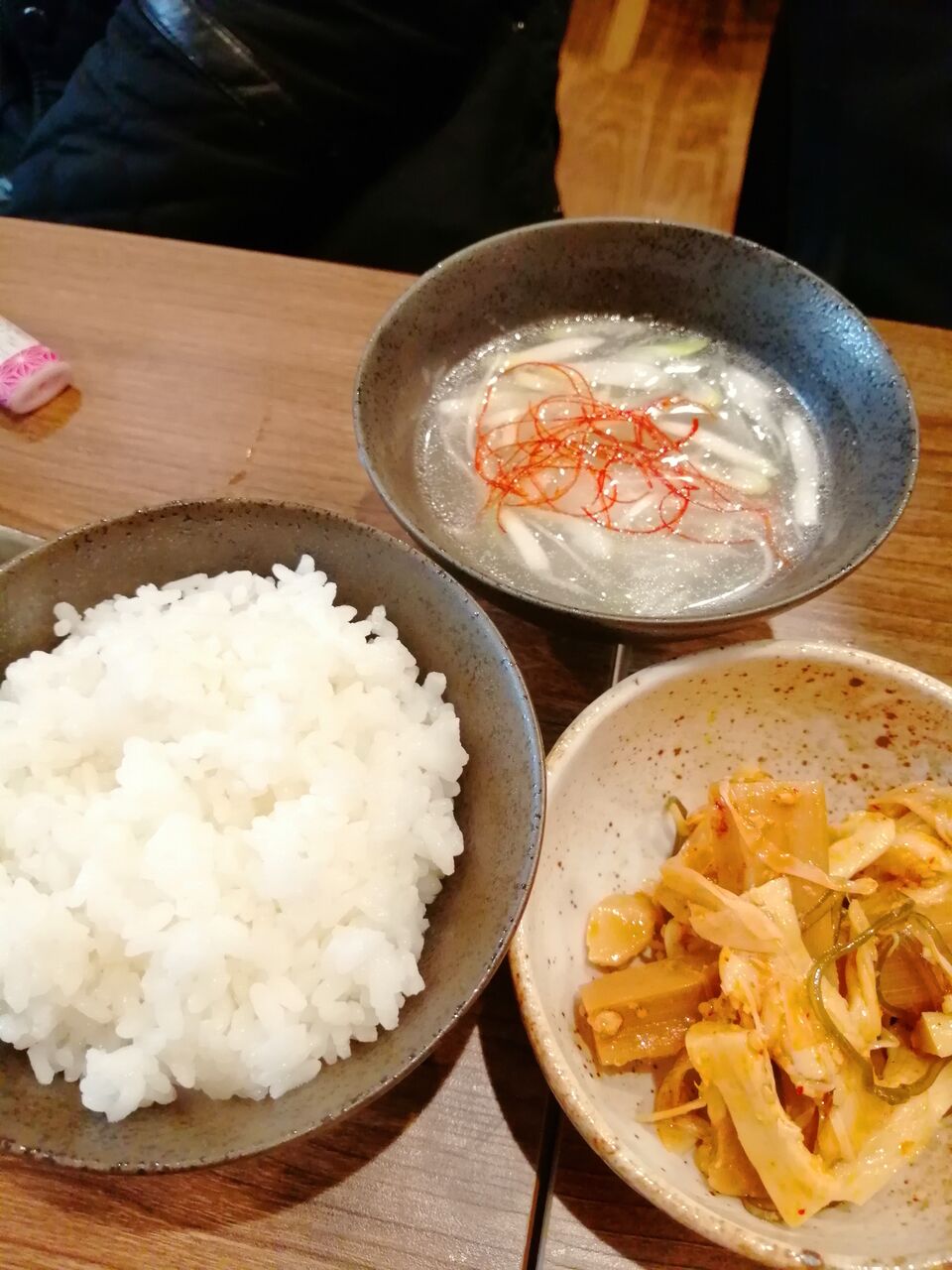 こちらのお店ではお通しがありません。スープとライスがセットになった「定食セット」が300円で用意されているので、お酒を飲まない人も餃子と組み合わせた定食として注文すれば食事のお店としても利用できそうです。