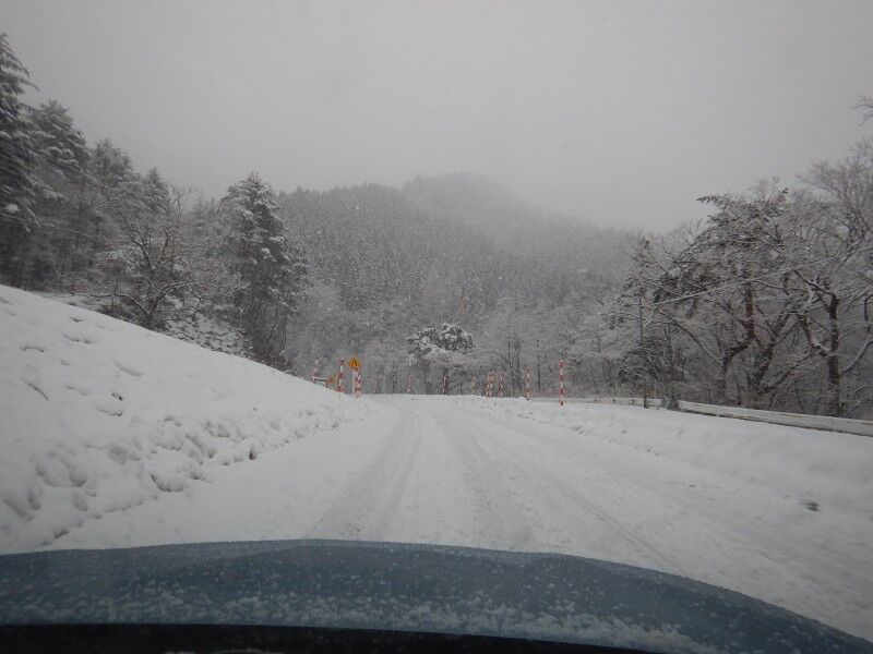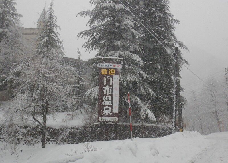 ふもとの米沢市内は雨模様でしたが、白布温泉へ登る途中から雪に変わります。